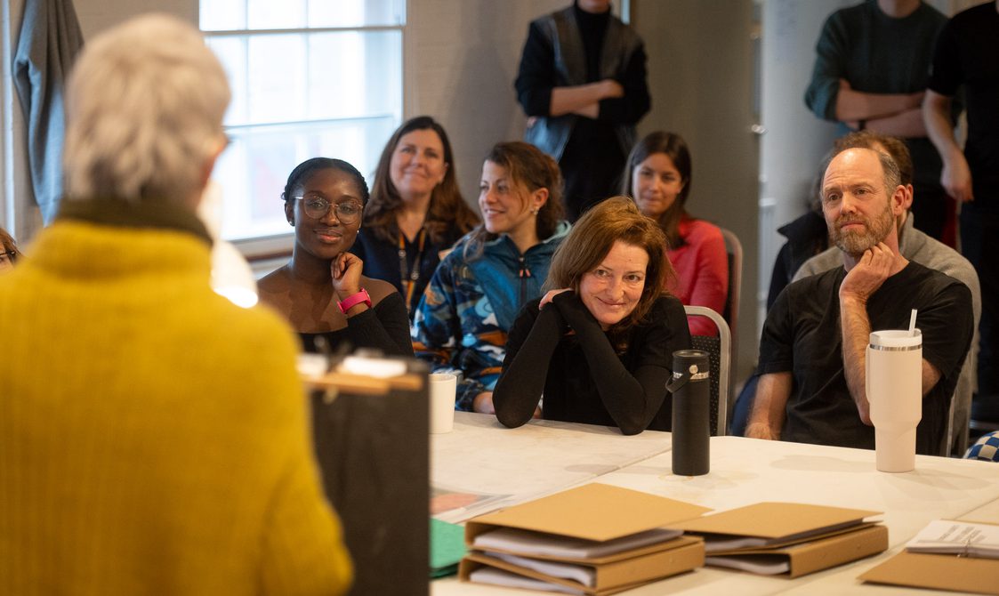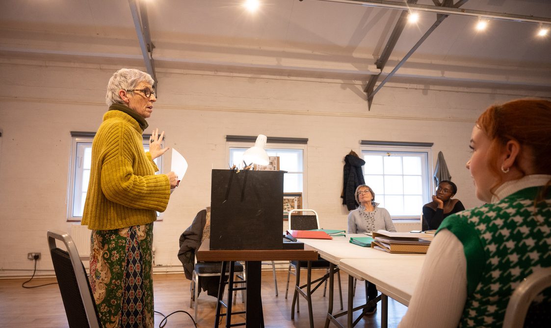 Liz Ascroft gives a design presentation to the Who's Afraid of Virginia Woolf? company